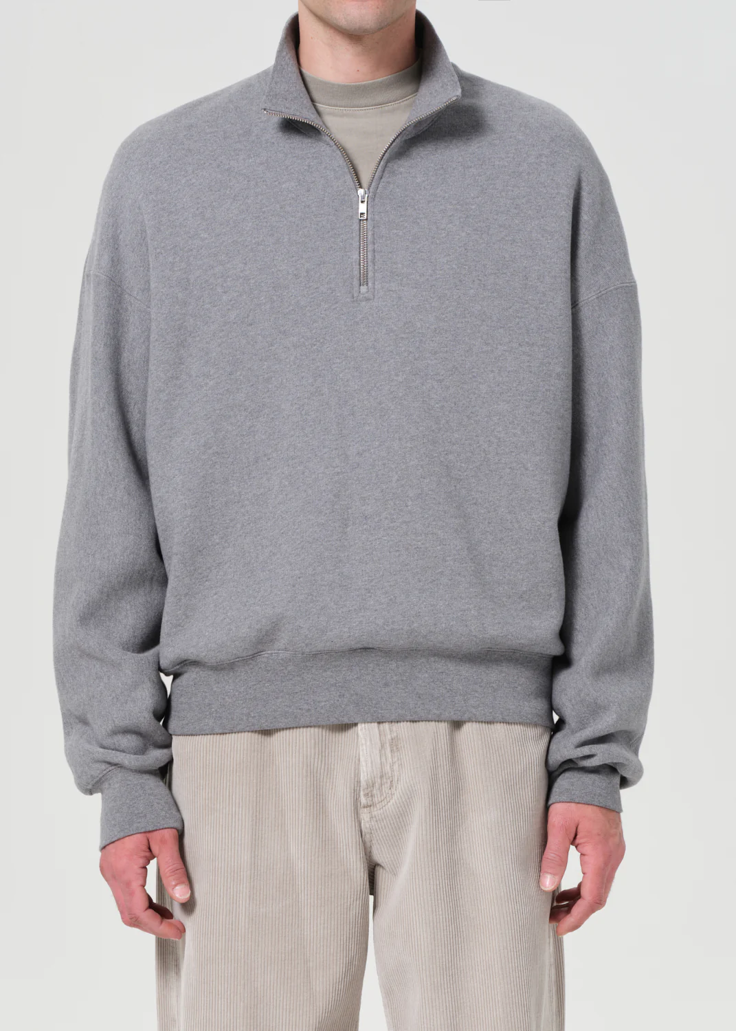Looks Like: Medium grey quarter zip long sleeve sweatshirt