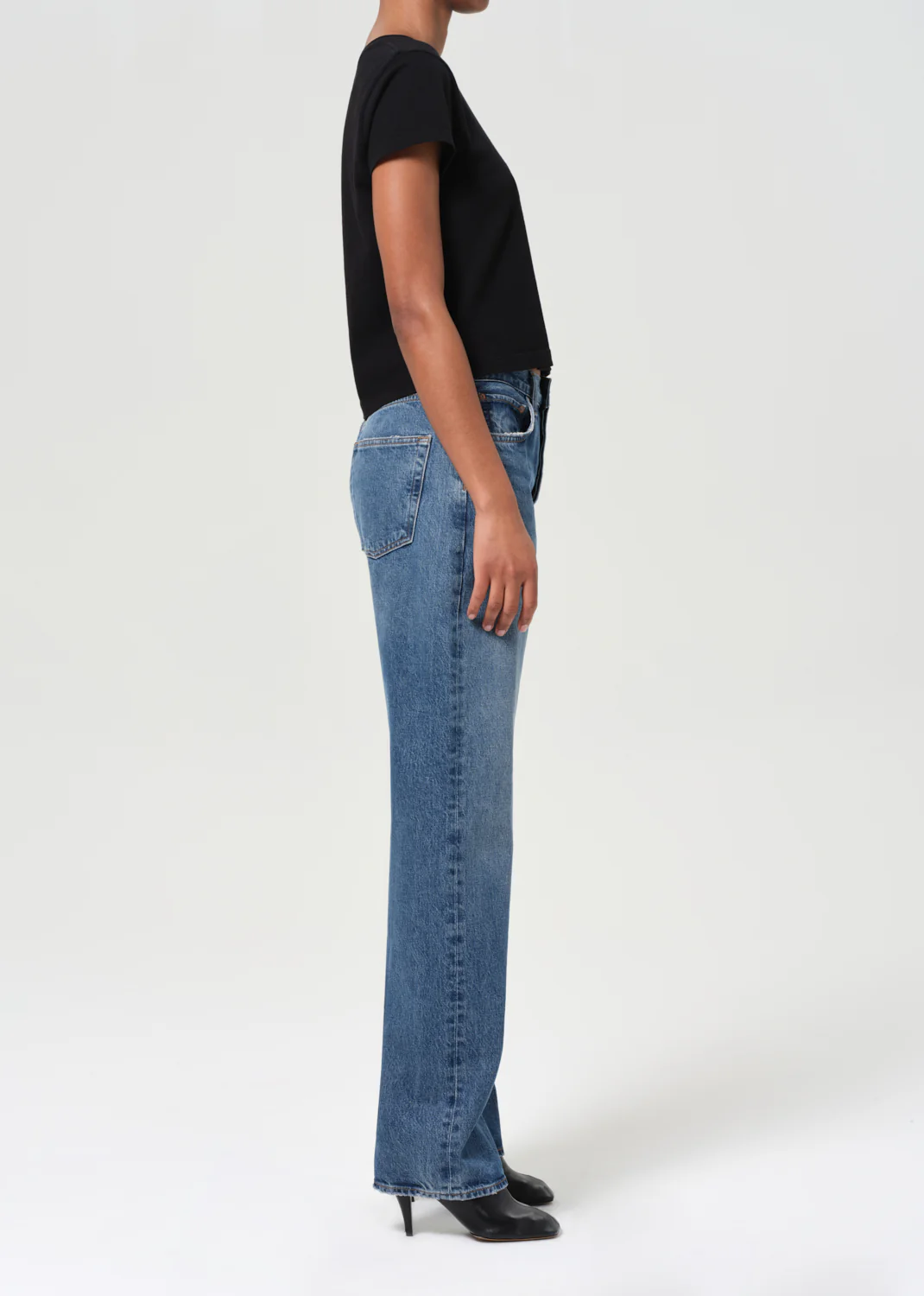 The Kelly features a flattering high-rise waist that leads into a relaxed top block, falling into a classic straight leg with a vintage-inspired extended inseam. Crafted from a blend of regenerative cotton and recycled cotton in dark indigo, this non-stretch denim offers a beautiful drape and a perfectly worn-in look with natural fading and subtle distressing. Style them with a sleek bodysuit and ankle boots for a polished look, or pair with a relaxed tee and sneakers for an effortless off-duty vibe.