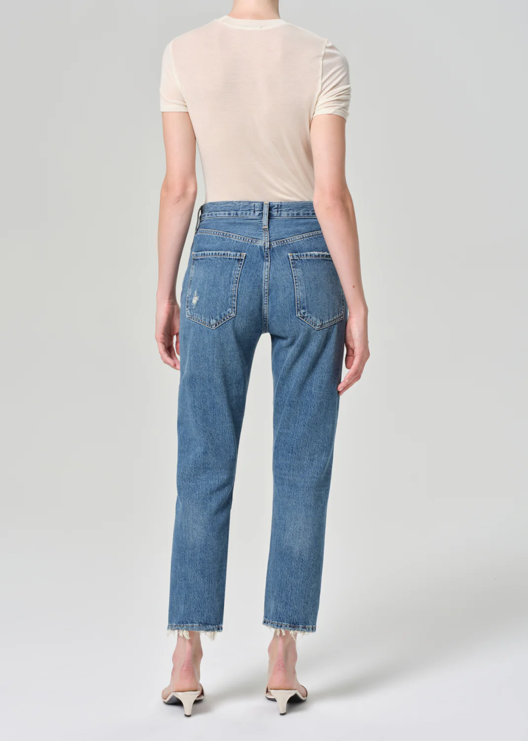 Our signature slim straight leg. With a better-than-vintage aesthetic, the Riley is an iconic brand favorite. The flattering high-rise and straight leg fits close to the body for a universally loved look. Available in stretch and non-stretch denim.